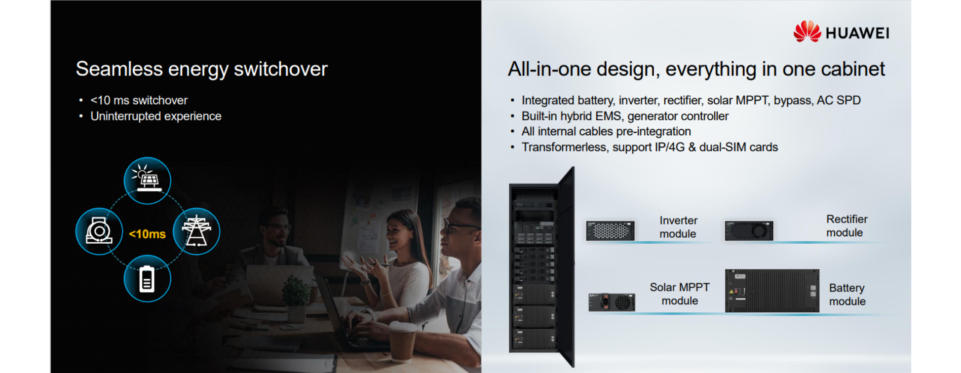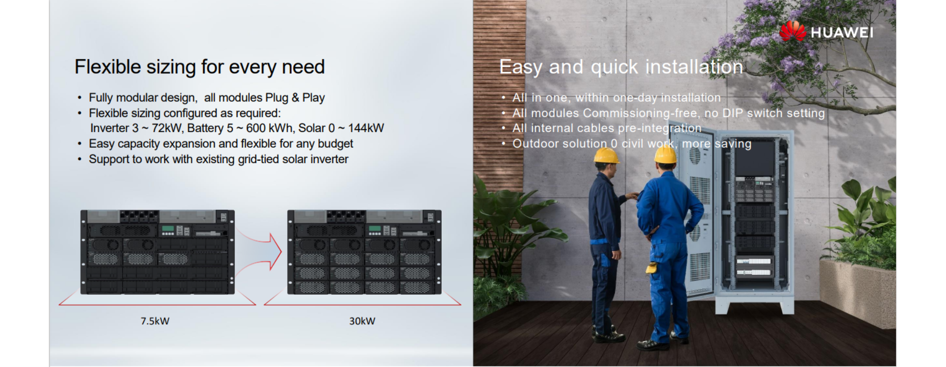 Based on the modular design, users can flexibly expand the capacity of batteries and power modules that supports flexible sizing for every budget, which helps minimize the construction cost throughout the lifecycle. At the same time, in order to solve the problem of underutilization of battery value caused by the mixed use of old and new batteries, Huawei battery hybrid technology ensures maximize battery value.